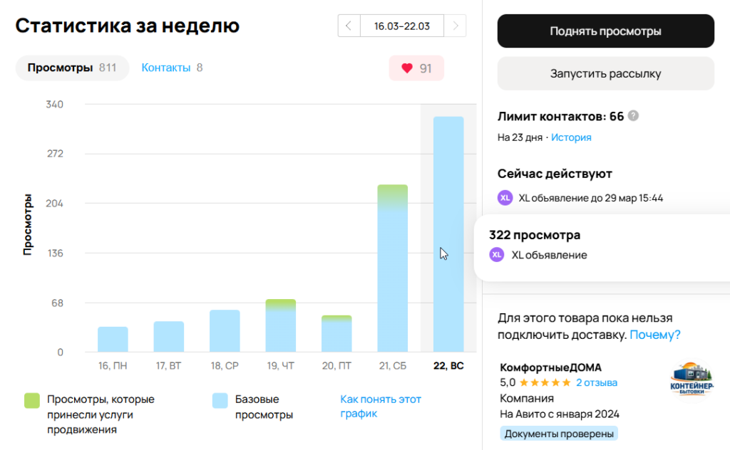 3. Кейс: Почему свои услуги не продаются, а с Авитологом — продаются. Запуск бизнеса с нуля. ( за неделу 811 просмотров ) Из низ две бытовки купили сразу и предварительная заявка на Апрель.